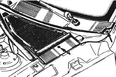 4. Выпустите фиксаторы обтекателей (в основании ветрового стекла), потянув панели вверх (см. иллюстрацию).