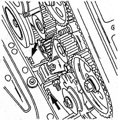 22.6 Стрелками показано место крепления упорной пластины двигателя (турбодизельный двигатель)