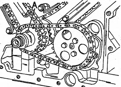 23. Отверните три болта звездочки масляного насоса и снимите звездочку вместе с цепью.
