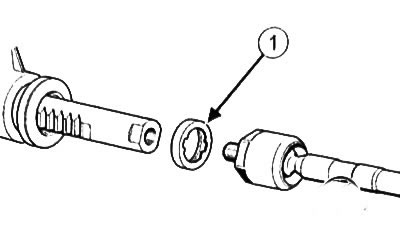 Во избежание неправильной установки ограничители (I) шаровых шарниров рулевых тяг имеют цветовое обозначение. При снятии или замене шарового шарнира рулевой тяги следить за тем, чтобы устанавливались ограничители соответствующего цвета.