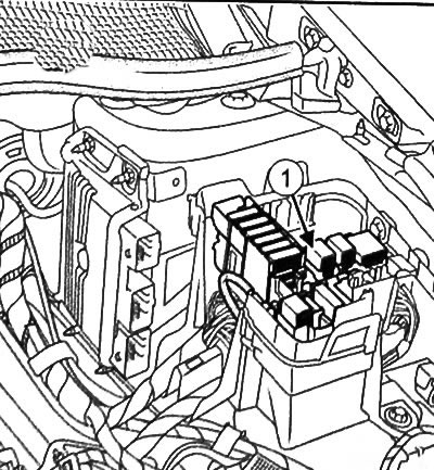 7. Снять крышку с блока реле и предохранителей моторного отсека.