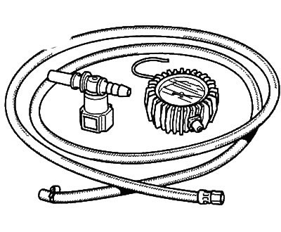 1. Подготовить топливный манометр с переходником (Mot. 1311-01) и Т-образный соединительный элемент (Mot. 1311-08).