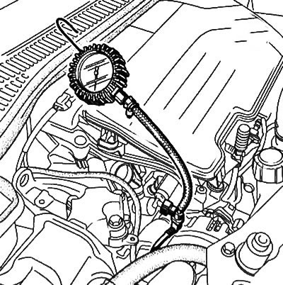 10. Измерить давление топлива. Оно должно составлять 3.5 бар и быть постоянным.