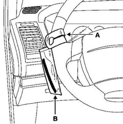 Оберните пластиковый пакет А вокруг рулевого колеса, закрепив его на спице со стороны, противоположной направлению увода.