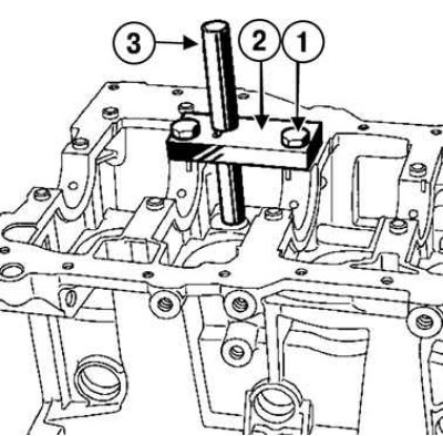 Рис. 2.156. Установка форсунки цилиндров 1 и 3: 1 – болты; 2 – приспособление; 3 – кондуктор