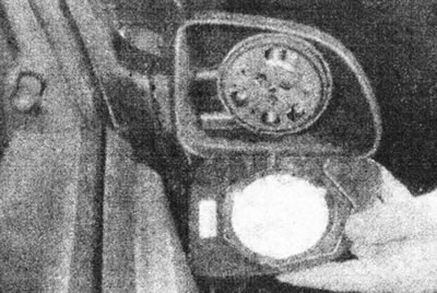 13. Устаўце тонкую адвёртку ў адтуліну ў падставе кажуха люстэрка і намацайце вышчэрбленую частку блакавальнага кольца, які мацуе шкло.