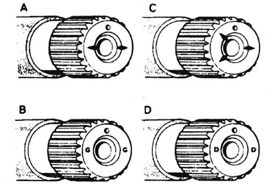 12.7 Ідэнтыфікацыйныя пазнакі тарсіёнаў задняй падвескі: А і В - Левы тарсіён; З і D - Правы тарсіён.