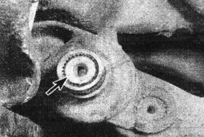 (задняя вось закрытага тыпу)13. Круціце тарсіён, пакуль не знойдзеце становішча, у якім ён можа быць вольна ўстаўлены ў пазы на кранштэйне падшыпніка і самім падшыпніку. Угоніце тарсіён цалкам у працоўнае становішча, выкарыстоўваючы малаток і выбівачку, выкананую з мяккага металу.
