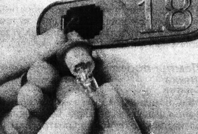 15. У адваротным выпадку зніміце блок ліхтара як апісана ў Главе 9, затым павярніце патрон супраць гадзіннікавай стрэлкі і зніміце яго (гл. ілюстрацыю).