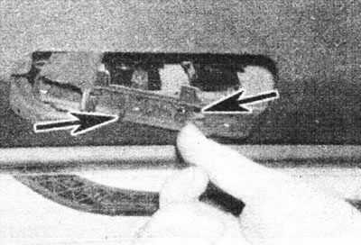35. Націсніце на дзве крапежныя клямкі, і аддзеліце трымальнік лямпаў ад блока ліхтароў (гл. ілюстрацыю).