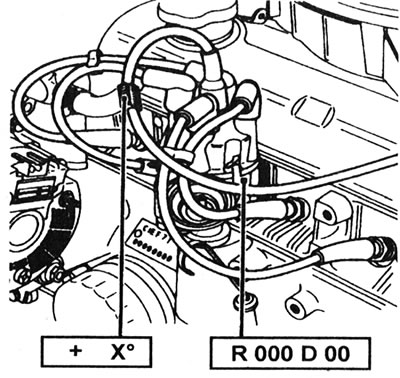 4. Глядзіце Спецыфікацыі ў пачатку гэтага Раздзела і заўвагі па рэгуляванні статычнага кута апярэджання запальвання. Гэта значэнне таксама можна знайсці на заціску, прымацаваным да з правадоў высокай напругі.