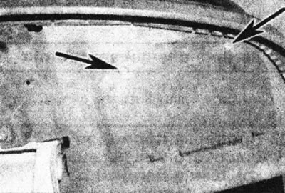 21.5 Адкруціце два шрубы мацавання вечка паветранага фільтра (адзначаны стрэлкамі) -рухавік Р3Р з паветраным фільтрам за панэллю пярэдняга крыла.