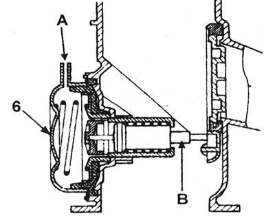 25.7 Схема тэрмастата/вакуумнай капсулы (6): А - Ад вакуумнага клапана; У - Тэрмастат.