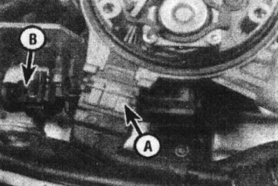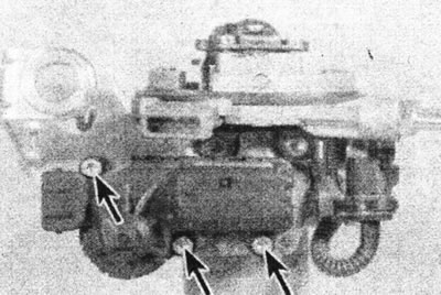 14.33. Крапежныя шрубы які прыводзіць матора рэжыму халастога ходу (адзначаны стрэлкамі).