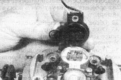 14.19. Зніміце зборку датчыка тэмпературы паветра. Вечка таксама служыць у якасці злучальніка для паліўнай фарсункі.