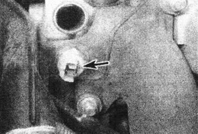 14.21. Датчык тэмпературы астуджальнай вадкасці (адзначаны стрэлкай) на задняй частцы блока цыліндраў - рухавік F3P.