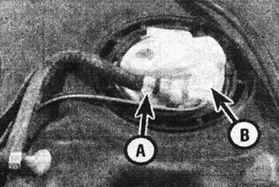 9.10. Адлучыце паліўны шланг (А) і шматкантактны злучальнік (У) ад верхняй часткі топливоподкачивающего помпы.