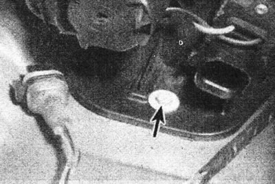 12.17. Вінт мацавання блока паветраразмеркавальніка (адзначаны стрэлкай) даступны толькі пасля зняцця нагнятальніка.
