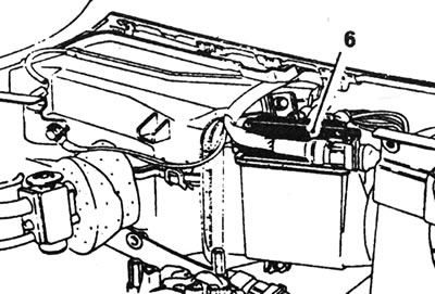 14. Рэзістар знаходзіцца злева ад радыятара. Для праверкі яго супраціву кампанент не трэба здымаць, дастаткова проста адключыць шматкантактны злучальнік (гл. ілюстрацыю).
