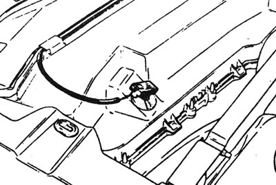 4. Адлучыце ад акумулятара адмоўны провад, затым зніміце рычагі шклоачышчальніка і абцякальнік ветравога шкла (Раздзел 11).