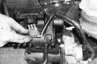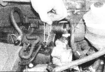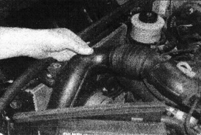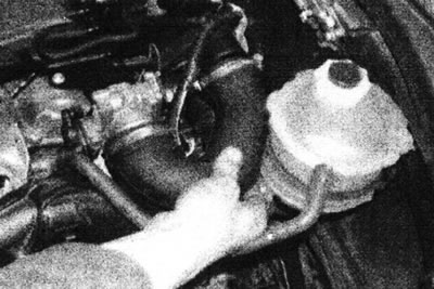 8. Прыслабце хамут і адлучыце шланг гарачага паветра ад каленчатага патрубка на галоўцы блока цыліндраў. Таксама адлучыце выходны шланг ад кажуха паветранага фільтра.