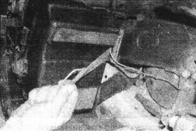 19. Пад пярэднім крылом вызваліце гумовы рамень, затым дастаньце паветраны фільтр з-пад крыла(гл. ілюстрацыі).
