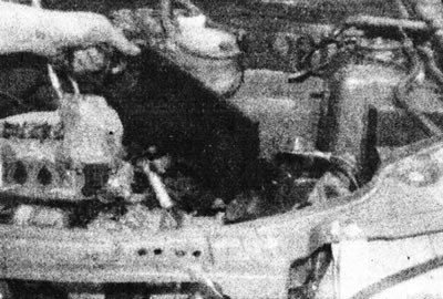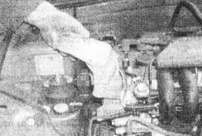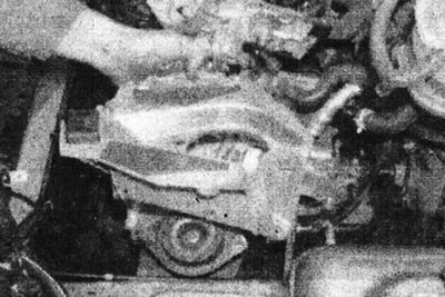 29. Адкруціце дзве гайкі, якія мацуюць кранштэйны падвешвання да кранштэйна скрынкі перадач, затым адкруціце чатыры ніта, якія мацуюць кранштэйны да кузава, і дастаньце яго з маторнага адсека (гл. ілюстрацыі).