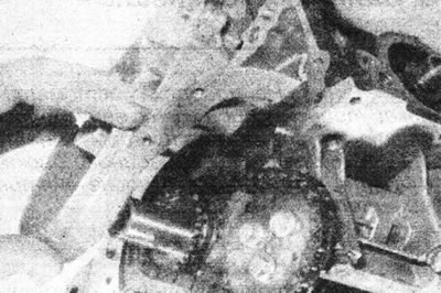 19. Надзеньце ланцуг на зорачку алейнай помпы, затым на вядучую зорачку коленвала і ўсталюеце зорачку на калодцы алейнай помпы.