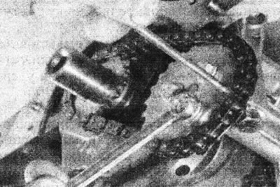 7. Зніміце зорачку алейнай помпы, і вызваліце ланцуг ад вядучай зорачкі на каленвале.