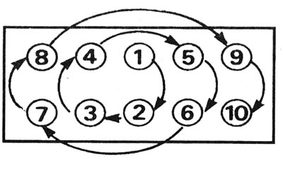 11.29. Паслядоўнасць зацяжкі нітаў мацавання галоўкі блока цыліндраў - усе рухавікі F-серыі.