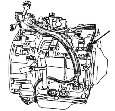 1. Датчык хуткасці знаходзіцца ў верхняй частцы левай сценкі трансмісіі (гл. ілюстрацыю).