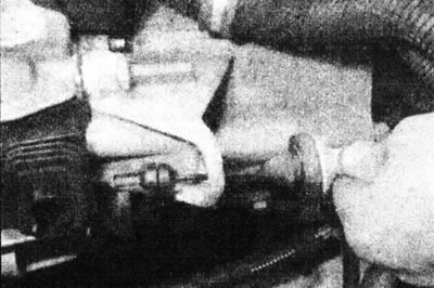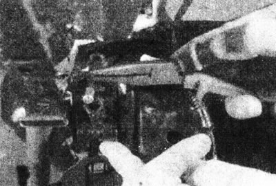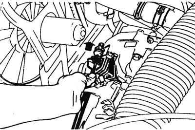 10. Працуючы ў маторным адсеку, прапусціце іншы канец тросіка праз кранштэйны картэра счаплення і прычапіце яго да відэльца выключэння счаплення. Замацуеце тросік клямарамі.
