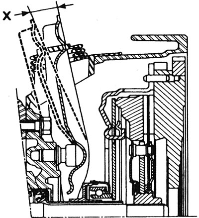 2.14. Праверце ход відэльца выключэння счаплення (X); Велічыня X пазначана ў тэксце.