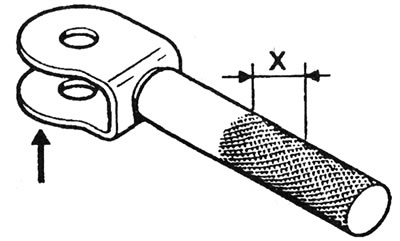 3.12. Участак X вобласці з накаткай пры падлучэнні цягі павінен застацца знадворку. X = 10 - 12 мм
