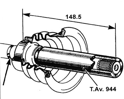 10. Прымацуеце трыпоід стопорным кольцам, сочачы затым, каб яно патрапіла ў канаўку прываднага вала. Дзе стопорное кольца не выкарыстоўваецца, прымацуеце Шрус, адхінуўшы край прываднага вала з дапамогай малатка і мысліка ў трох кропках, адлеглых сябар ад сябра на 120°.
