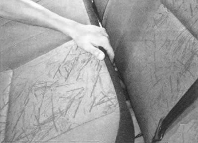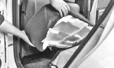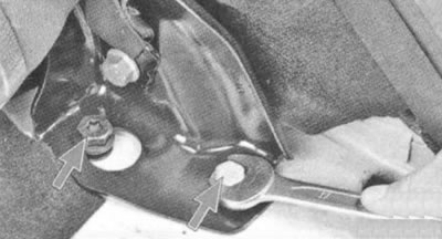 5. ...па два ніта мацавання (злева і справа) кранштэйна да падставы кузава і выміце спінку з салона аўтамабіля.