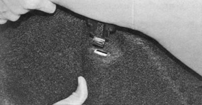 2. Выміце фіксатары, размешчаныя на пярэднім краі падушкі, з адтулін у падставе кузава...
