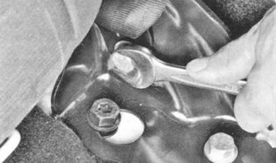 4. Вывярніце па адным ніце мацавання (злева і справа) задняга рамяня бяспекі да кранштэйна спінкі сядзення...