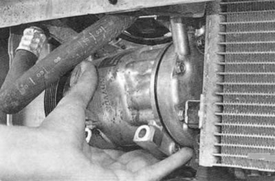 7. Вывярніце ніты мацавання кампрэсара кандыцыянера і, не адлучаючы ад яго трубаправоды, акуратна адвядзіце кампрэсар у бок.
