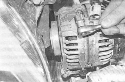 Заўвага. Зняцце і ўстаноўка генератара паказаны на прыкладзе рухавікоў K7J і К7М. Зняцце і ўсталёўку генератара рухавіка К4М выконваюць аналагічна, адрозненне толькі ў спосабе мацавання генератара да рухавіка.