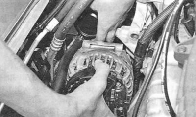 11. Адвядзіце ў бок помпа гідраўзмацняльніка рулявога кіравання, каб шланг не мяшаў выманню генератара, і зніміце генератар.