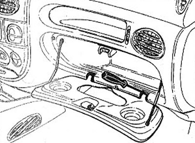 43. Адкрыйце вечка рэчавай скрыні адлучыце фіксатары абодвух ланцужкоў падвескі вечка, трохі ўціснуўшы стрыжні фіксатараў.