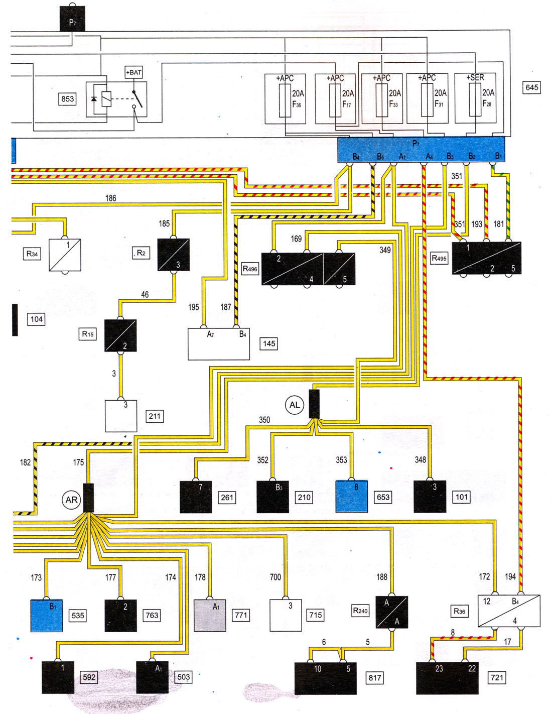 Артыкул аб рамонце французскіх аўтамабіляў Рэно Сцэнік 1 (1996-2003): Схема 23. Размеркавальная плата (падача харчавання пры ўключэнні запальвання): https://www.renaultbook.ru/by/Scenic/1/electrics/schemes/shema-23-raspredelitelnaya-plata-podacha-pitaniya-pri-vklyuchenii