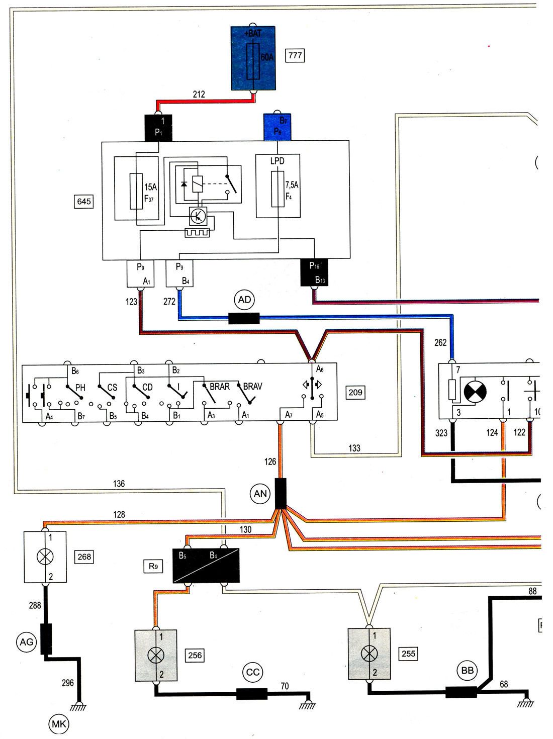 ➽ Схема 2а: Вонкавае асвятленне — стоп-сігналы і паказальнікі… Рэно Кліё 1 (1990-1998)