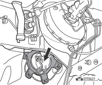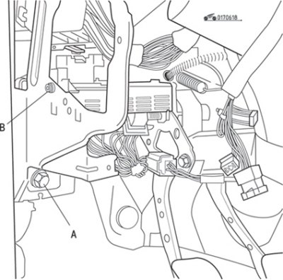 - усталюеце паветравод, цэнтральны электронны камутацыйны блок, трымальнік ручкі карэктара блок-фар, вечка блока засцерагальнікаў, абіўку перадпакоя стойкі, ушчыльняльнік левых дзвярэй, ручку прывада замка капота;