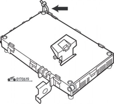 - зніміце ніт мацавання кранштэйна цэнтральнага электроннага камутацыйнага блока і ніт мацавання цэнтральнага электроннага камутацыйнага блока (мал. 6.18);