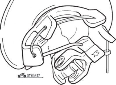 - абвяжыце аборкай клапаны ахоўнага чахла і відэлец карданнага шарніра рулявога вала (гл. мал. 6.17), прапіхніце яго ў адтуліну маторнага шчыта;