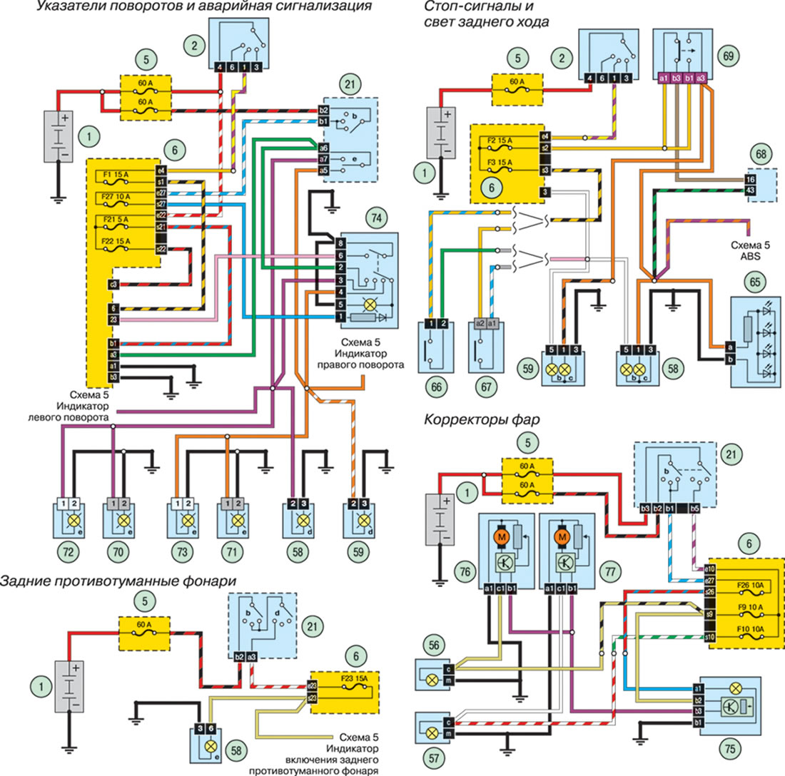 Схема 6. Паваротнікі, стоп-сігналы, карэктары фар...