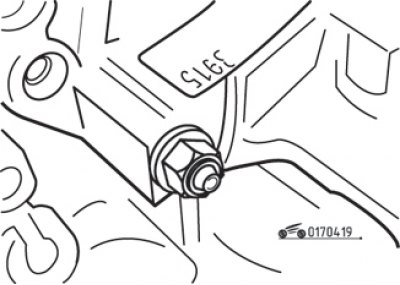 Мал. 4.15. Не выварочвайце цалкам верхні ніт мацавання скрынкі перадач да рухавіка