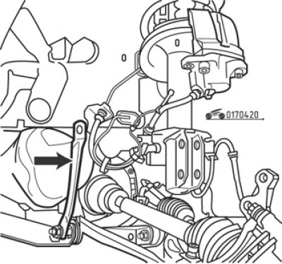 - зніміце вал прывада левага пярэдняга кола разам са ступіцай кола (гл. падраздзел "Прывад пярэдніх колаў");